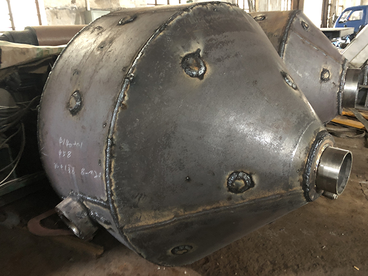 目前幹燥機械(xiè)行業製造雙錐回轉幹燥機時普遍使用夾套加熱裝置。但是其具有受熱(rè)不均勻(yún)的缺點,加熱介質難以進入(rù)部分夾套死角區域(yù),影響(xiǎng)產品質量和產量。加(jiā)熱介質容易在夾套(tào)內結垢。加熱(rè)介質會因重力問題產生加熱偏向並(bìng)引起(qǐ)熱利用(yòng)率低的問題。另外夾套加(jiā)熱裝置屬於壓力容(róng)器,對使(shǐ)用場所和後期維護會有所限製。夾套加熱裝置由(yóu)鐵板與不鏽鋼板焊接而成,材料膨脹係數不同,長時間使用有(yǒu)容(róng)易滲(shèn)漏的缺點(diǎn)。