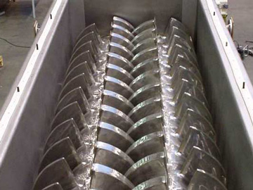 排出的尾氣(qì)進入冷(lěng)凝器冷凝。廢水集中回收至回(huí)收罐交由汙水處理廠處理。烘幹後產生的出料含水率降低至40%以下。如果配備冷(lěng)卻槳葉或者冷卻(què)螺旋,產生(shēng)出(chū)的物料既可成為粉(fěn)末狀。