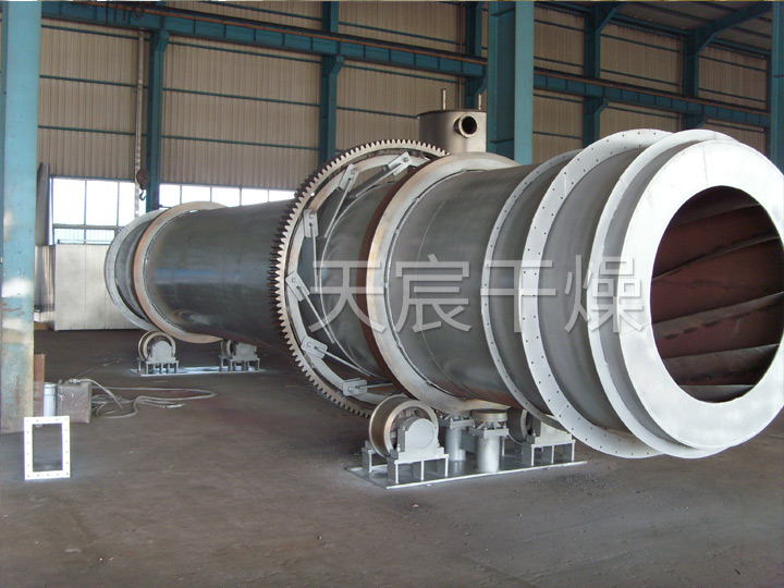 濕物料從幹燥機一端投入後(hòu),在內筒均布的抄板器翻(fān)動下,物料在幹燥(zào)器內均勻分(fèn)布與分散,並與(yǔ)並流(逆流)的熱空氣充分接觸,加快了幹燥(zào)傳(chuán)熱(rè),傳至(zhì)推動(dòng)力(lì)。在幹燥過程中,物料在帶有傾斜度的抄板和熱氣流的作用(yòng)下,可調控地運動至幹燥機(jī)另(lìng)一段星形卸料閥(fá)排出成品。