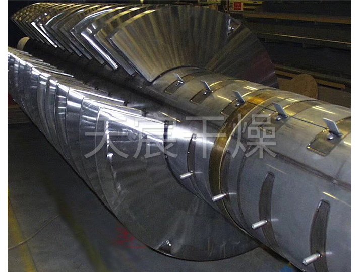 空心軸上密集排列著楔型中空漿葉,熱介質經空心軸流經漿(jiāng)葉。單位有(yǒu)效容積內傳熱麵積很(hěn)大,熱介質溫度從-40℃到320℃,可以是水蒸汽,也(yě)可以(yǐ)是液體(tǐ)型:如熱水、導熱油等。間接傳導加熱(rè),沒有攜帶空氣帶走熱量,熱量均用來(lái)加熱物(wù)料。熱量損失僅為通過器(qì)體保溫層向環境的散熱。楔型漿葉傳熱麵具有自清潔功能。物料顆粒與楔型麵的相對運動產生洗刷作(zuò)用,能(néng)夠洗刷掉楔型麵上附著物料,使運轉中一(yī)直保持著清潔的傳熱麵。漿葉(yè)幹燥機(jī)的殼體為Ω型,殼體內一般安排二到四根空心攪拌軸(zhóu)。殼體有密封端蓋與上蓋,防止物料粉塵外泄而充(chōng)分發揮作用。